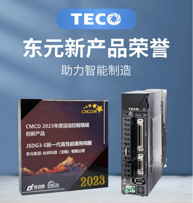頒獎(jiǎng)典禮表彰了伺服、運(yùn)控/直驅(qū)領(lǐng)域優(yōu)秀企業(yè)品牌、創(chuàng)新技術(shù)、產(chǎn)品、行業(yè)應(yīng)用。其中東元新產(chǎn)品JSDG3-E系列伺服,榮獲【CMCD2023年度運(yùn)動(dòng)控制領(lǐng)域創(chuàng)新產(chǎn)品獎(jiǎng)】。