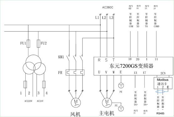 ⑴ 根據(jù)東元7200GS變頻器及臺(tái)安CCAC-M型空壓機(jī)控制器的規(guī)格,完成電源線及控制線的配線,注意變頻器外圍選購(gòu)件(如:空開、斷路器、電抗器等)的連接及所用動(dòng)力線的線徑、材質(zhì)。
