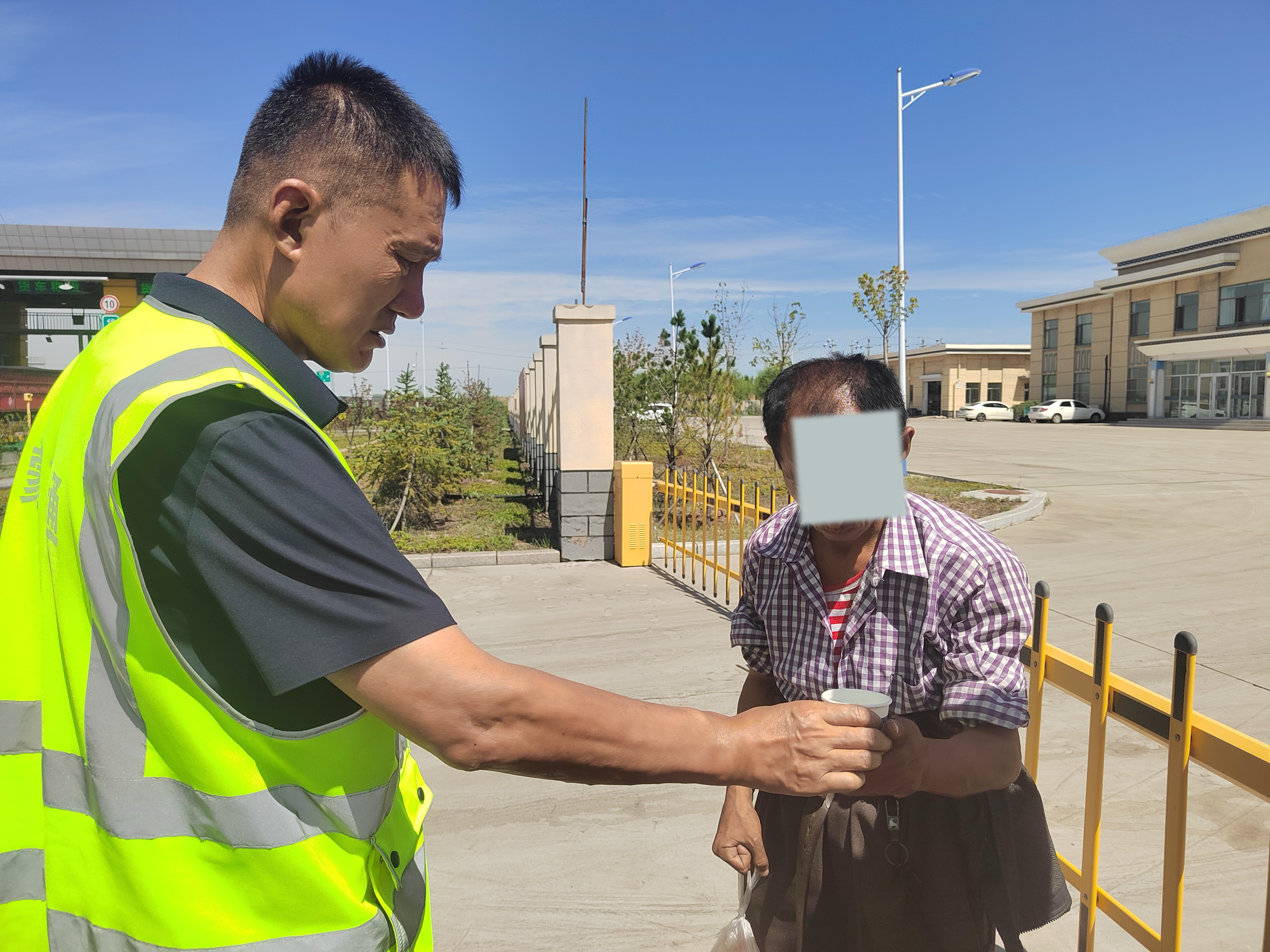 經(jīng)耐心溝通,了解到老人因身體與智力存在障礙,已連續(xù)兩天未進(jìn)食且身無分文,竟打算沿高速公路步行返回百公里外的達(dá)拉特旗樹林召鎮(zhèn)??紤]到老人的安全,值班所長當(dāng)即撥打110報警,并在現(xiàn)場全程陪伴、輕聲安撫老人情緒。工作人員還主動為老人端來熱乎的午餐、切好的西瓜和飲用水,讓老人在焦急等待中感受到溫暖。