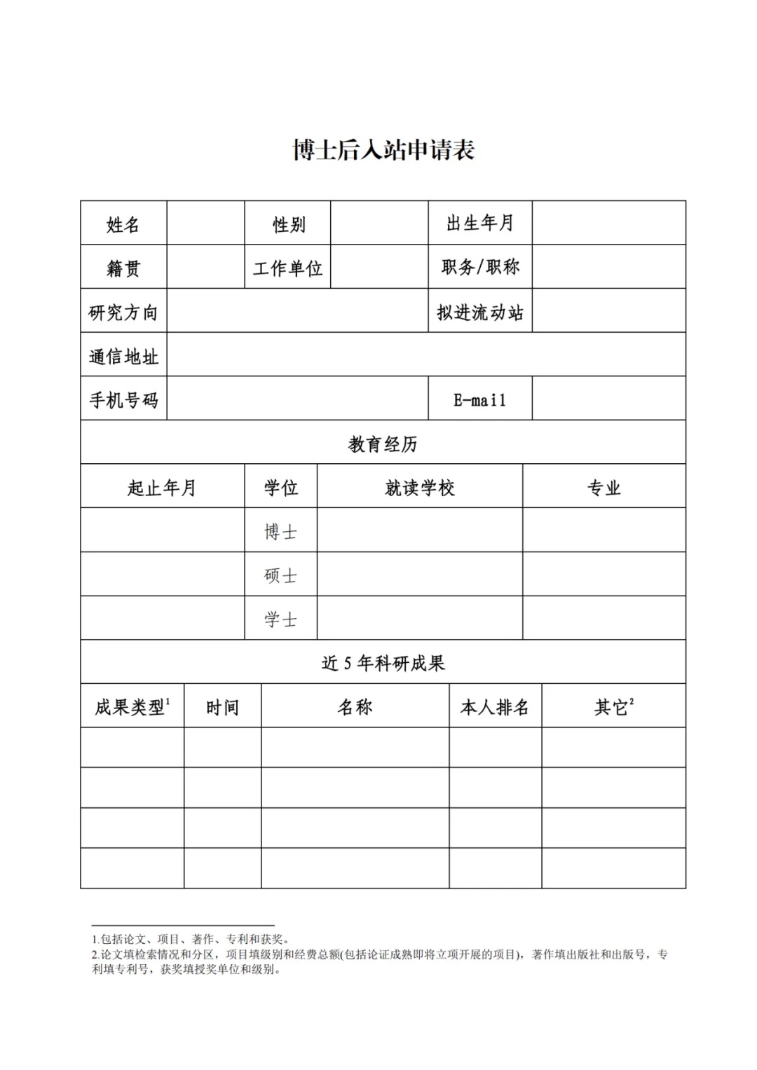 附件:《博士后入站申请表》