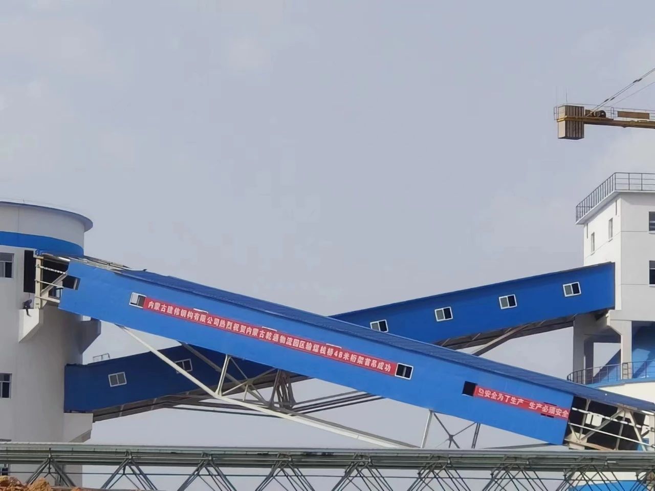 2024年5月20日下午 15 點 26 分由山西開源益通礦業(yè)科技工程有限公司承建的1號轉(zhuǎn)載點到1號產(chǎn)品倉帶式輸送機鋼結(jié)構(gòu)棧橋順利完成吊裝工作。