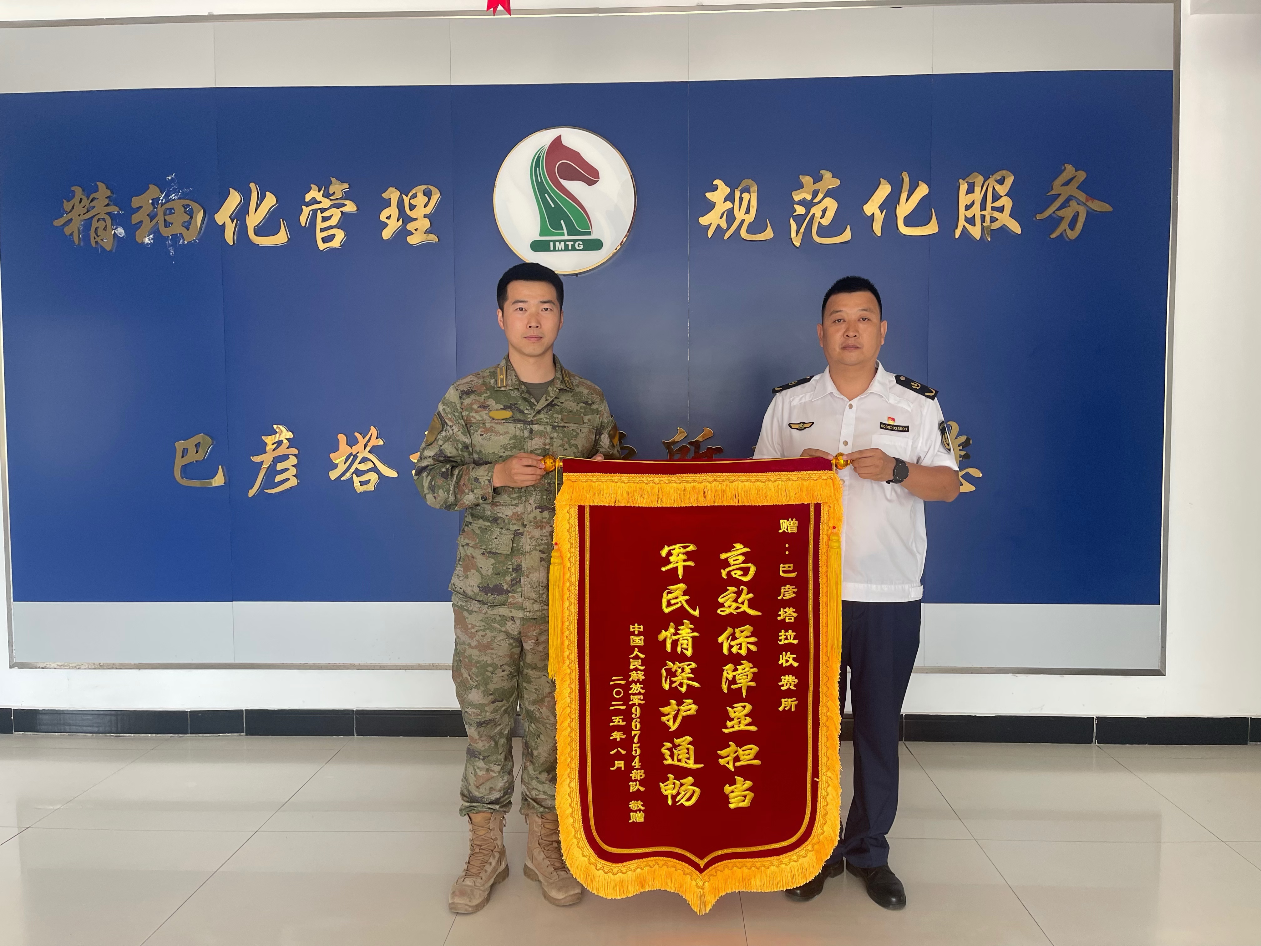 此次贈(zèng)旗,是對(duì)收費(fèi)所工作的高度認(rèn)可。不僅展現(xiàn)了收費(fèi)所在保通保暢工作中的高效處置能力和責(zé)任擔(dān)當(dāng),更彰顯了軍民之間守望相助、共筑和諧的深厚情誼,為社會(huì)傳遞了溫暖正能量。部隊(duì)代表表示,每次執(zhí)行任務(wù)途經(jīng)此處,都能感受到收費(fèi)所的支持與配合,高效保障讓部隊(duì)無(wú)后顧之憂,這份助力成為任務(wù)順利推進(jìn)的重要支撐。