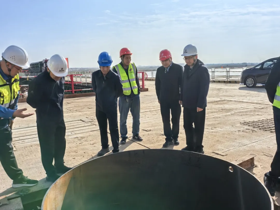 督查過程中,工作組嚴格遵循“實事求是、客觀公正”原則,以“聽、問、查、看”四維方式推進工作。督查組先聽取項目建設情況匯報,再通過現(xiàn)場詢問深入了解細節(jié),隨后聚焦巴音陶亥黃河特大橋鋼棧橋、樁基承臺圍堰及濱河大道跨堤橋等關鍵工程部位開展實地檢查,全面掌握工程建設實際狀況。期間,各參建單位主動與督查組成員交流技術經驗與管理方法,在互動中實現(xiàn)技術共享、經驗互鑒,為進一步提升項目建設質量與管理水平夯實基礎。