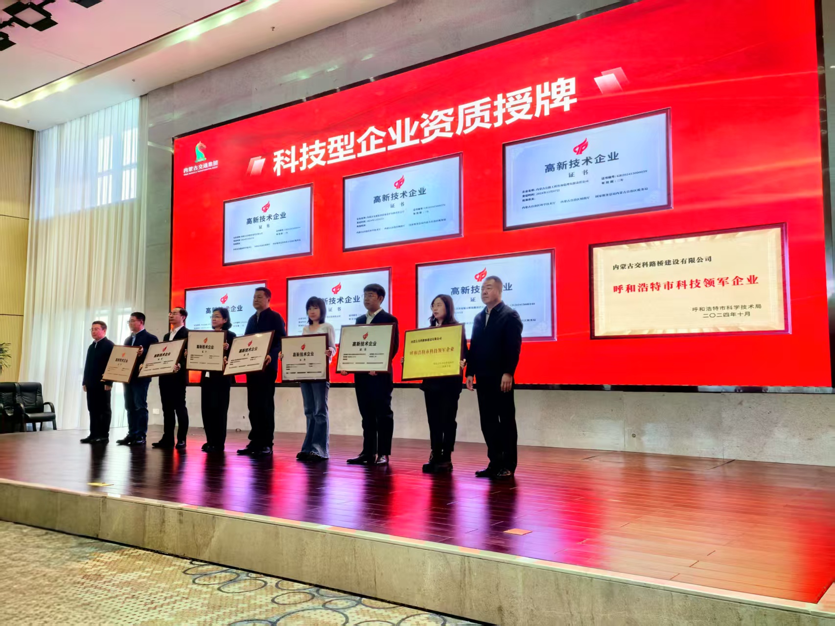 監(jiān)理公司因在2024年度表現(xiàn)卓越,集團(tuán)黨委委員、總會(huì)計(jì)師白寶祥和集團(tuán)總經(jīng)理助理蘇海巖親自授牌由內(nèi)蒙古自治區(qū)科學(xué)技術(shù)廳、內(nèi)蒙古自治區(qū)財(cái)政廳和國(guó)家稅務(wù)總局內(nèi)蒙古自治區(qū)稅務(wù)局聯(lián)合頒發(fā)的高新技術(shù)企業(yè)、內(nèi)蒙古自治區(qū)科技型中小企業(yè)。